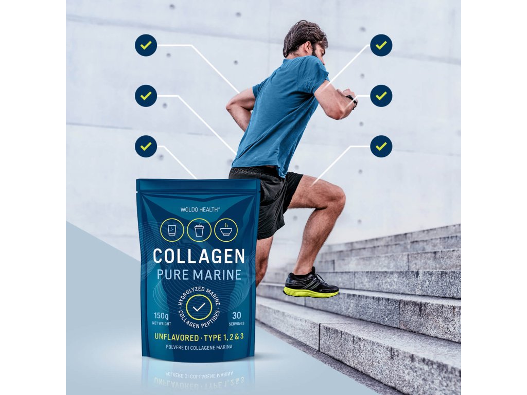 Morski kolagen Woldohealth zawiera kolagen typu I — najczęściej występujący w naszym organizmie. Jest niezbędny dla naszej skóry i przyczynia się do jej elastyczności oraz jędrności. Około 25. roku życia organizm traci zdolność naturalnej syntezy kolagenu. Skutkiem jego niedoboru jest wiotczenie skóry i utrata blasku. Kolagen jest także glikoproteiną i uczestniczy w kluczowych funkcjach niemal wszystkich narządów i tkanek.