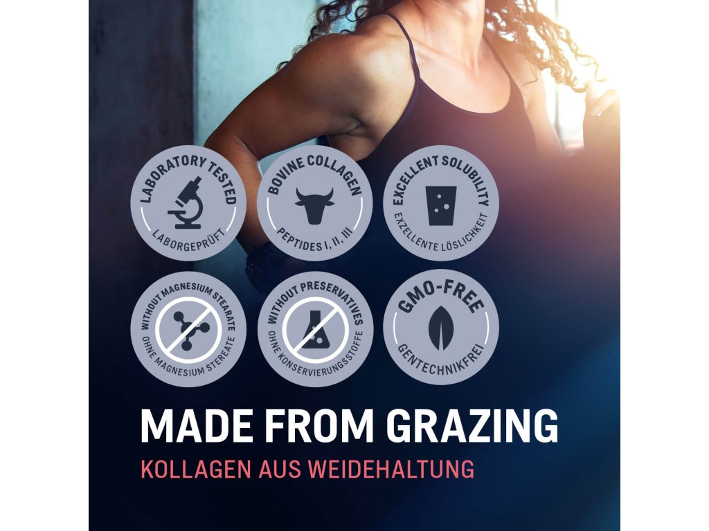 Powstaje z wysokiej jakości surowców o potwierdzonym pochodzeniu i czystości – 100% kolagen pochodzi z farmy w Argentynie i posiada certyfikat Halal. Nie zawiera dodatków takich jak gluten, soja, laktoza ani substancje słodzące.