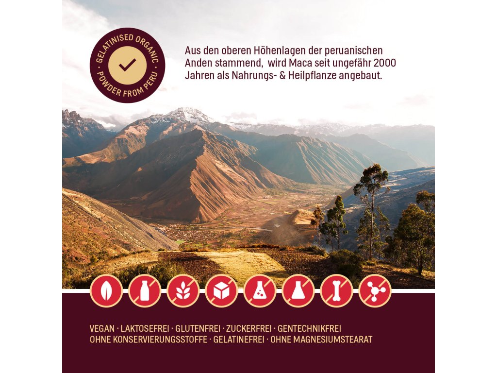 Maca to warzywo korzeniowe uprawiane w peruwiańskich Andach na wysokości 3500–4000 metrów. Tradycyjnie przetwarzana jest ręcznie, co zapewnia zachowanie jakości. Roślina ta ma długą historię sięgającą czasów Inków, kiedy była wykorzystywana jako element diety.