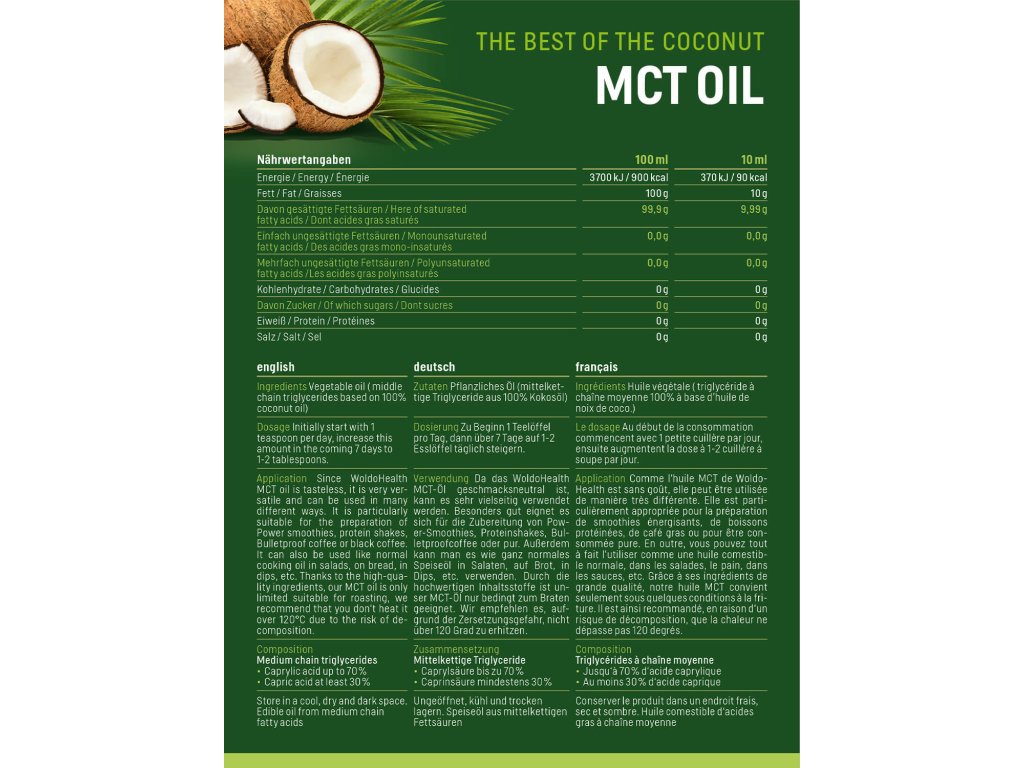 MCT olej je bez chuti a výrazně silnější než kokosový olej.