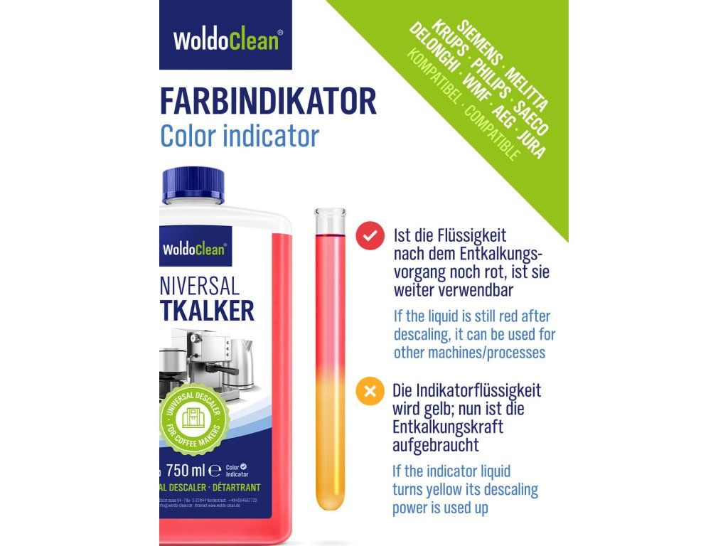 "Decalcifikátor WoldoClean se změní z červené na žlutou, jakmile klesá účinnost odvápňování.